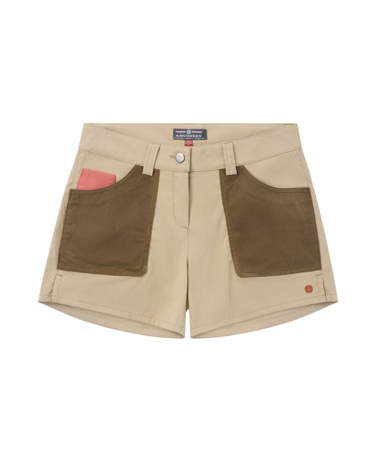 Amundsen Sports Field Shorts er laget med ekstra sterk stretch Cordura fra FOV Sverige. Disse lette shortsene er designet for tøff bruk, forsterket med forsterkninger av vokset bomullsduk fra Halley Stevenson, Skottland. Over den høyre lommen finner du vår signaturforvitrede røde klokkelomme.