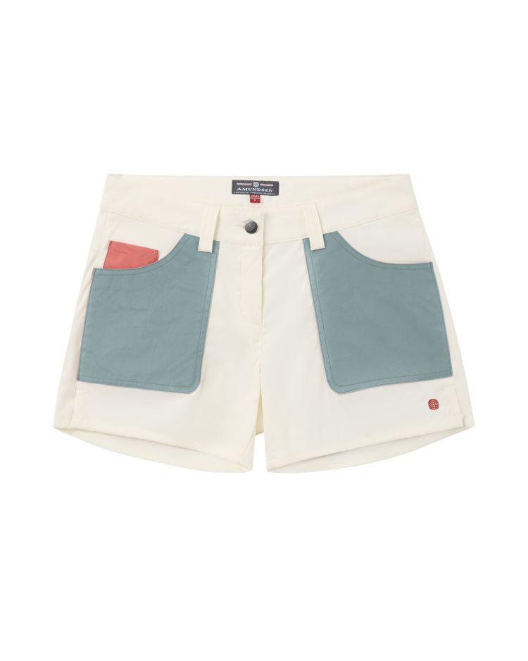 Amundsen Sports Field Shorts er laget med ekstra sterk stretch Cordura fra FOV Sverige. Disse lette shortsene er designet for tøff bruk, forsterket med forsterkninger av vokset bomullsduk fra Halley Stevenson, Skottland. Over den høyre lommen finner du vår signaturforvitrede røde klokkelomme.