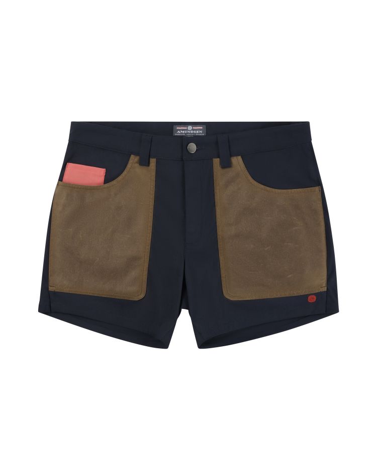 Amundsen Sports Field Shorts er laget med ekstra sterk stretch Cordura fra FOV Sverige. Disse lette shortsene er designet for tøff bruk, forsterket med forsterkninger av vokset bomullsduk fra Halley Stevenson, Skottland. Over den høyre lommen finner du vår signaturforvitrede røde klokkelomme.