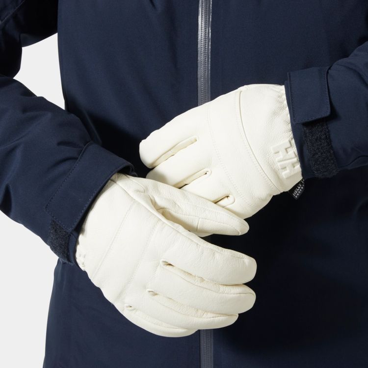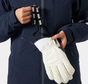 Alphelia hansker til dame er designet for skientusiaster som vil ha en eksklusiv stil og gode vanntette egenskaper. Disse skinnhanskene er skreddersydd spesielt for kvinner, og har en klassisk look og enestående slitestyrke. HELLY TECH® Professional-membranen sørger for vanntett beskyttelse som holder hendene tørre i skibakken. De har justerbare mansjetter med lukking som sørger for en ettersittende passform, og en klips som holder dem sammen når du ikke bruker dem.