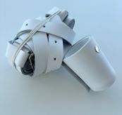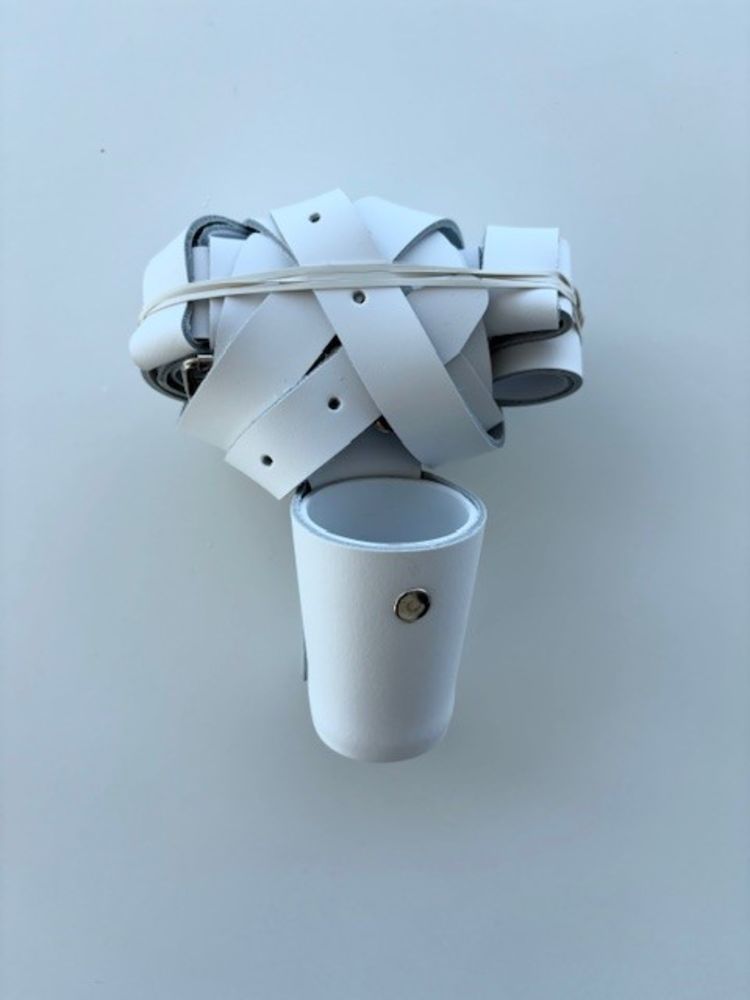 Bandolær i hvitt med kopp. Merk! Dette er et enklere bandolær, og passer til små/lette faner og lette bærestenger. For behov for et kraftigere bandolær til tyngre utstyr, se her