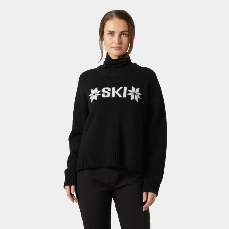 Bliss Ski strikkegenser til dame er designet for å få mest mulig ut av helgeturen til skianlegget – både på afterski og når du slapper av. Genseren er laget i en myk blanding av ull og nylon, og har en lett overdimensjonert og ledig passform med droppede skuldre, splitt i siden og ribbet kant, mansjetter og krage. Den har en grafisk skiinspirert logo foran, og blir garantert er favorittgenser i skibakken og ute på moro i fjellet.
