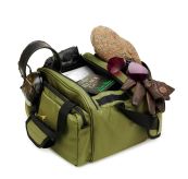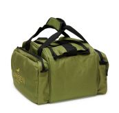 Denne vesken fra Laksen Sporting er slitesterk og PU-belagt - perfekt for en hel dag i felten eller leirskyting. Kan bære 250+ patroner og ideell for oppbevaring av hørselsvern, hansker, skytebriller og andre nødvendigheter. Toppen er utstyrt med toveis glidelås og borrelås. Har to utvendige og tre innerlommer. Har både en polstret lukkeklaff og en antiskli PU-belagt bærestropp.