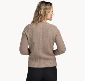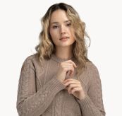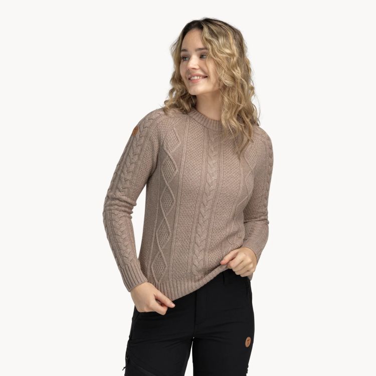En klassisk ullgenser til dame fra Tufte. Laget av en unik blanding av tykk, varm lammeull spunnet sammen med myk bambusviskose og modal fibre. 100 % superfin merinoull er blandet sammen med lammeullen på innsiden av halsen og i bunn av ermene, for å beskytte mot unødvendig kløe der huden er mest sensitiv. Genseren har raglanermer og har dekorativt mønster på forsiden og baksiden.