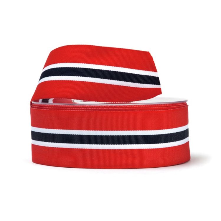 Nasjonalbånd i Norges farger. Passer fint til pynt på bordet, innpakning, feiringer og innvielsesbånd.