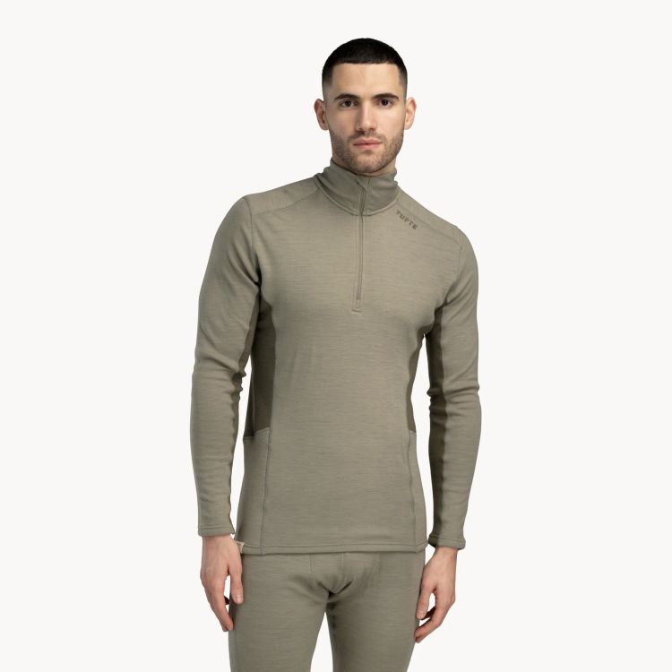 Polar Half Zip til herre fra Tufte er Tufte Wears varmeste ullundertøy i ull-mesh, og passer til alt fra fritid til ekspedisjoner og jakt. Ullundertøyet vil holde deg varm selv ved lav aktivitet. Denne ullgenseren har høy hals med glidelås, er naturlig teknisk og har to lag av 100 % merinoull – et innerste lag av ullnetting og et ytre lag av ullrib. De to lagene er sydd sammen i paneler. Ullnettingen gir super isolasjon og varme ved å fange små luftlommer inni nettingstrukturen, som varmes opp naturlig av din egen kroppsvarme. Det ytre laget absorberer fukt for å holde deg både varm og tørr. I ekstrem kulde, kle deg i Tufte Polar under vind- og vannavstøtende ytre lag eller en dunjakke for svært god varme.