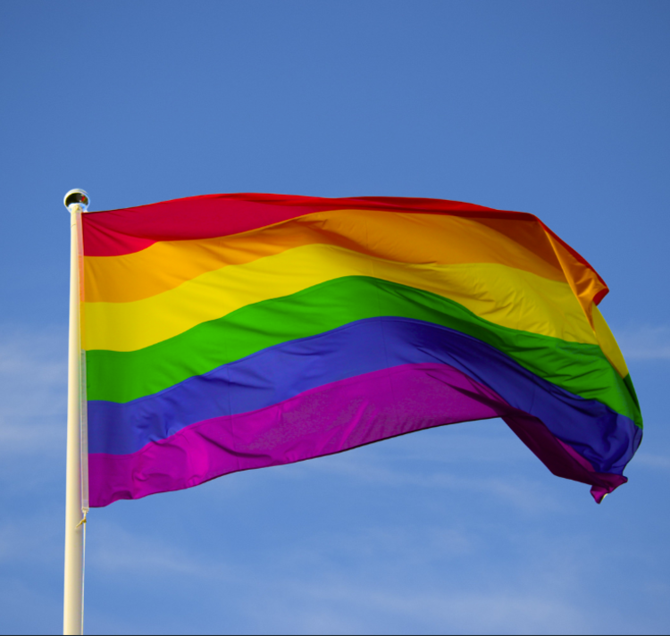 Trykket prideflagg 100 cm som leveres med løkke/hempe og kan dermed festes på balkongstenger og lignende.
