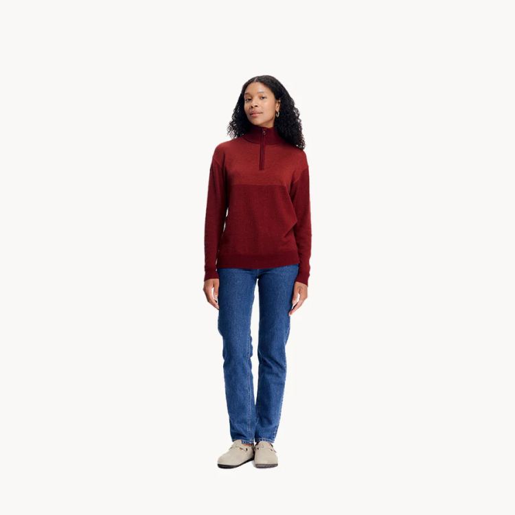 Robin stitch half zip genser dame rød