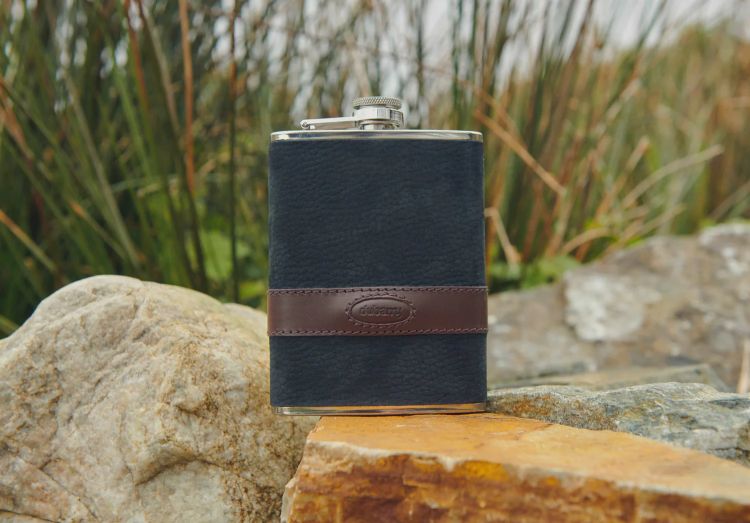 Lærinnbundet lommelykt laget av rustfritt stål og med hengslet skrukork fra Dubarry.