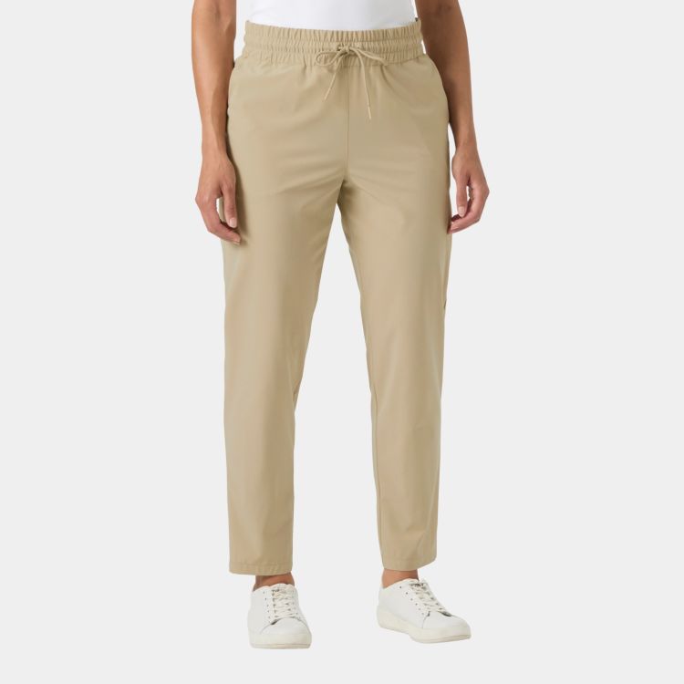 Disse perfekte helgebuksene er superlette, elegante og komfortable. De har en flatterende fasong med rynket strikk i livet, avsmalnende ben og skrålommer. Thalia-buksene er også tekniske. De har hurtigtørkende stoff og stretch, slik at du kan bruke dem til utendørsaktiviteter. Produktet inneholder resirkulerte Ocean Bound-materialer, dvs. materialer som ellers ville endt opp i havet, hentet innen 50 km fra en kystlinje eller hovedvannåre i regioner med risiko for plastforurensning. Se avsnittet om sammensetning for mer informasjon.